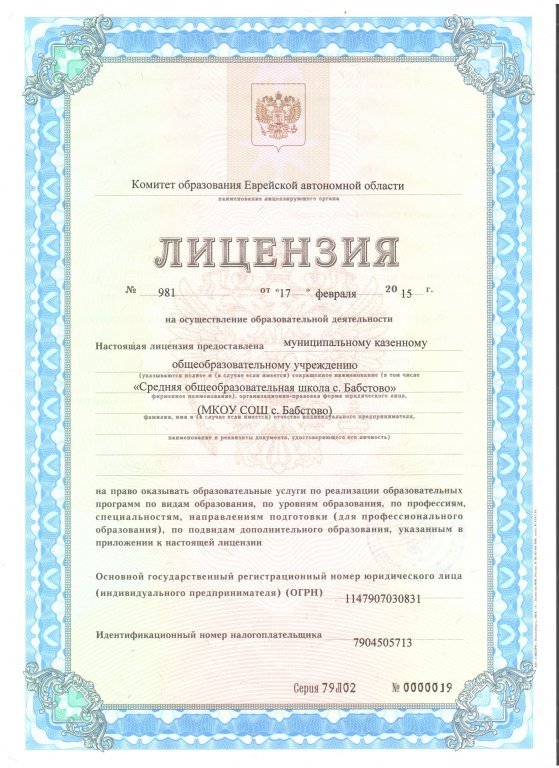 | Адрес местонахождения образовательной организации* | 679363, Еврейская Аобл, Ленинский р-н, Бабстово с, Оборонная ул, дом № 20, Ленина ул, дом № 37 |